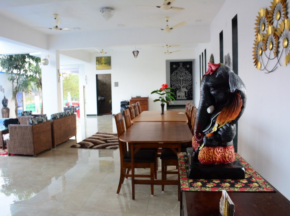 Starting with the spacious living room loaded with antique decoratives, a sofa set along with a wooden finished dining table along with a desire-filled kitchen.
