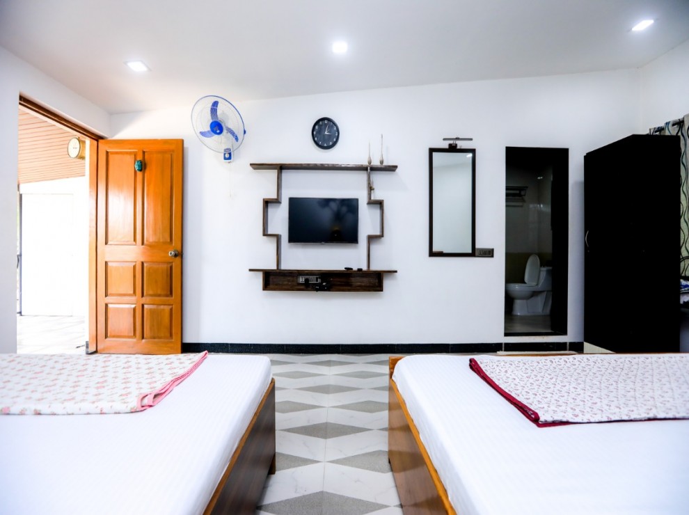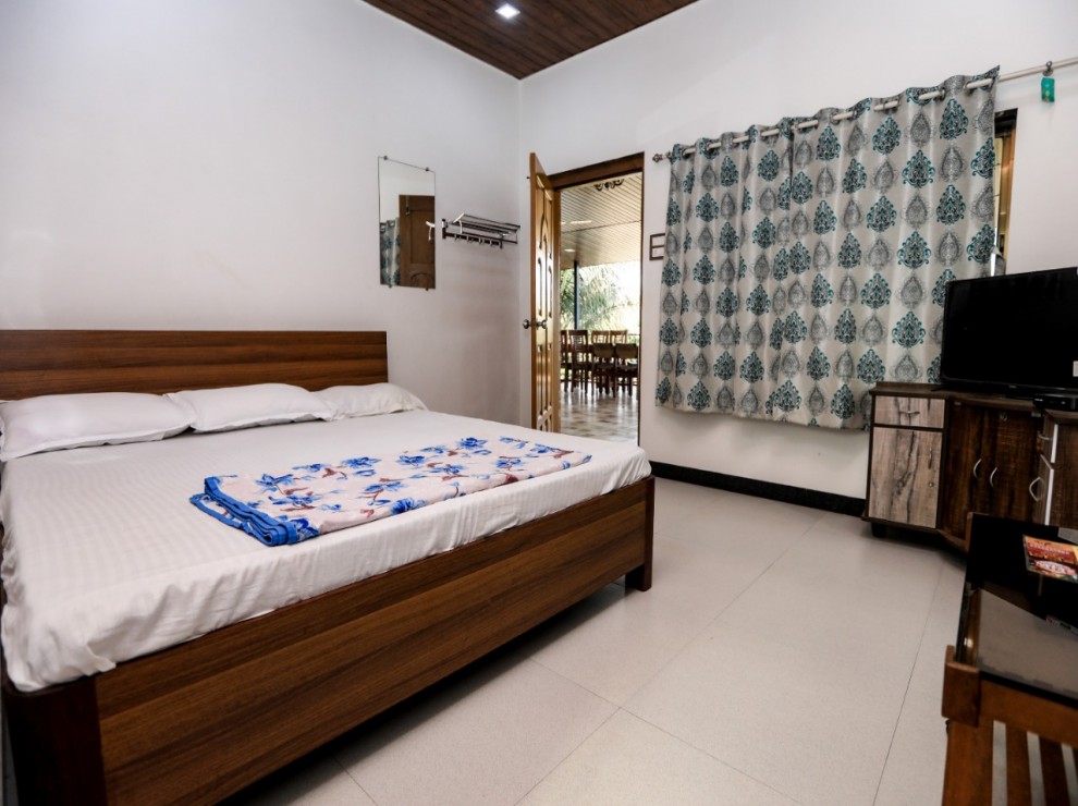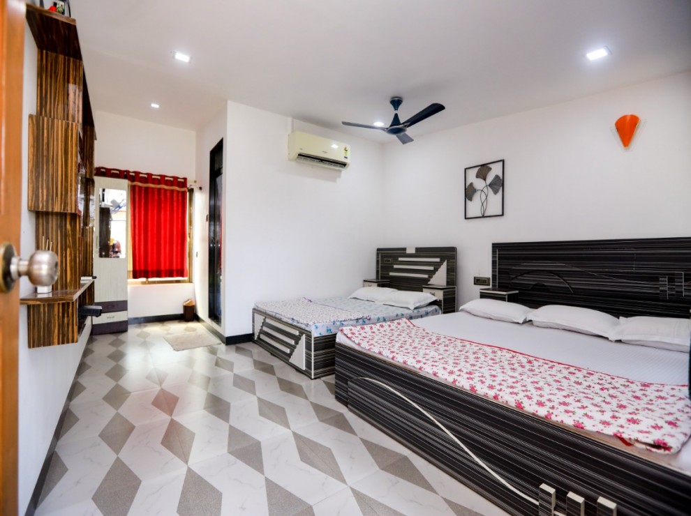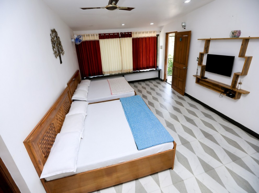 We provide free internet, a flat-screen TV, air conditioning, a refrigerator, an additional mattress, an aqua-guard for fresh water, power backup, and geysers in every bathroom with all of the essentials.